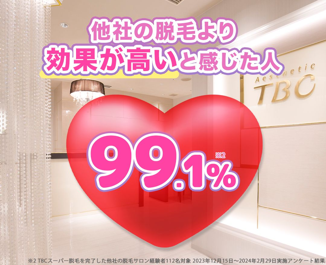※上記はTBCスーパー脱毛を継続的に行ったTBC社員の実績データの一例です。個人の一例であり、すべての方に同様の結果を保証するものではありません。